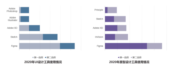 2020年,66%的設計師使用Figma進行UI設計,而在2019年這一比例為37%。Figma在海外市場發展呈現迅猛上升態勢