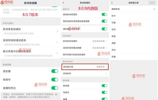 通過(guò)“我—設(shè)置—新消息通知”頁(yè)面,即可看到“消息提示音”選項(xiàng),點(diǎn)擊可以更換新消息通知的提示音,有默認(rèn)、積木、可愛(ài)等8種音效選擇。