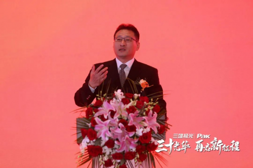 紅船破曉,龍騰盛世,“光”耀中華!會議盛典在總裁張宇濤的致辭中拉開序幕,他首先對到場的經銷商表示熱烈的歡迎和由衷的感謝。縱觀三雄極光30年來的風雨歷程,離不開全體三雄人堅持“艱苦奮斗、勇于創新、敢為人先”的創業精神,這是與“紅船精神”高度契合,是創業者”紅船精神”的集中體現。2021年三雄極光正式啟動二次創業的新征程。張宇濤總裁同時就公司的發展目標、業務策略、組織優化、協同發展等方面作了全面闡述。