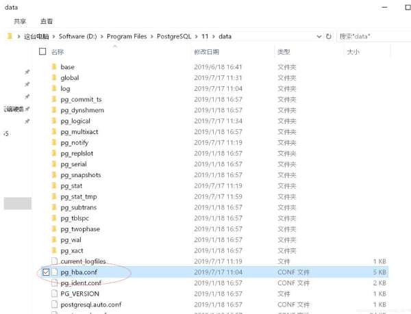 1、找到Postgresql安裝目錄下的data,打開文件夾,找到pg_hba.conf