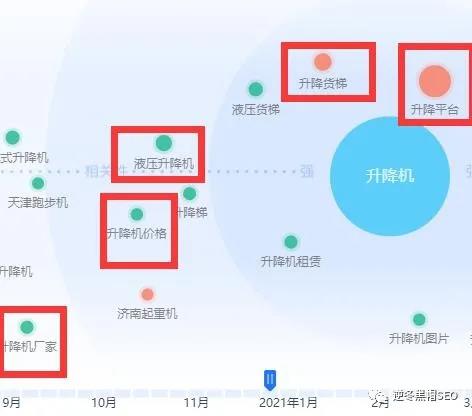 大家通過上圖可以看出,【提升機】這個詞圓還是比較大的,證明也比較相關,那為什么咱們沒講呢,因為這個詞是最近才出現了,半年前還沒出現,如下圖: