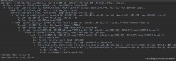 于是w將共享緩存區的內存分配為20GB, 單個線程用于hash和排序的分配了200MB。 重啟數據庫, 跑了下執行計劃。 sql里面從以前的一分鐘,四五十秒變成了三四秒左右。