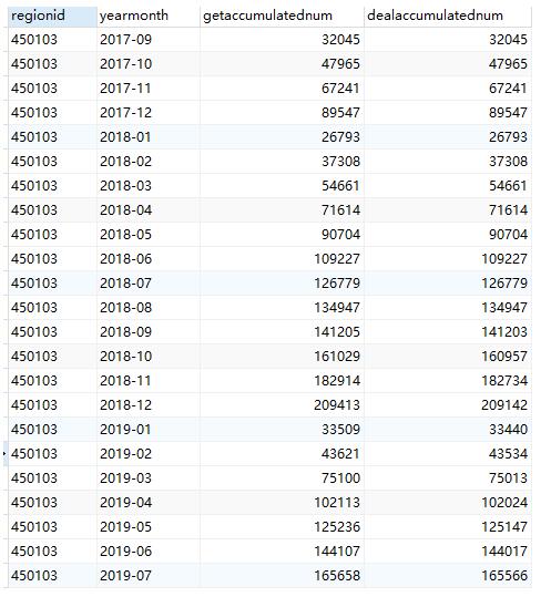 SUM(dealnum) OVER(PARTITION BY regionid ,SUBSTRING(yearmonth,0,5) ORDER BY yearmonth) AS dealaccumulatednum