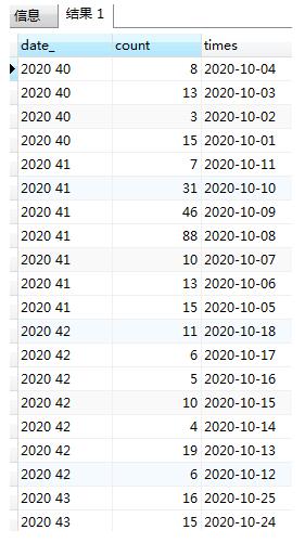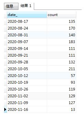 因為外國人的習慣是一周從周日開始,二我們中國人的習慣一周的開始是星期一,這里 -1 即將顯示日期從周日變成了周一,但是內部統計的數量還是從 上周日到周六進行 統計的,改變的僅僅是顯示星期一的時間。